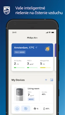Objavte inteligentné ovládanie kvality vzduchu s aplikáciou Air+. Prepojte ju so svojím zariadením Philips Air a zabezpečte si neustály prísun čistého a zdravého vzduchu pre lepšie dýchanie každý deň.